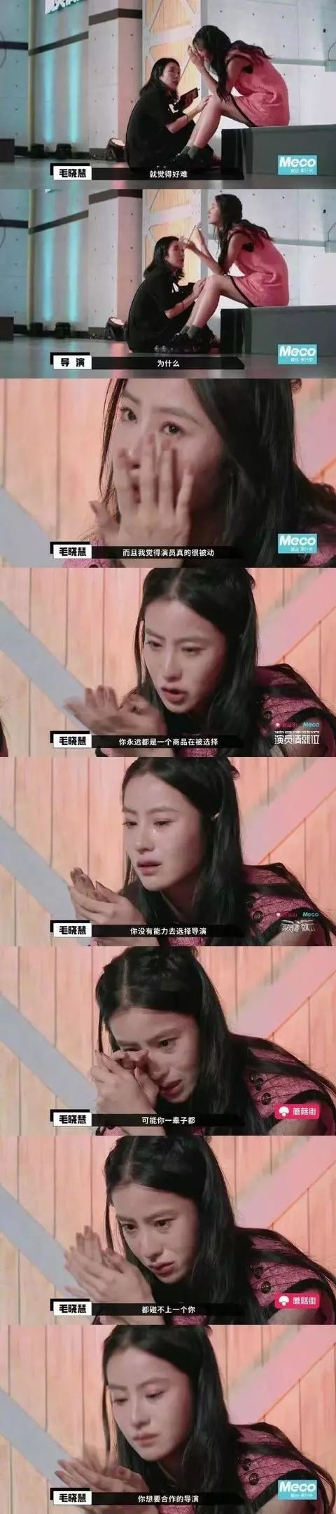 节目组跑过去问她怎么了,她说,感觉演员好难,像一个商品一样,永远是被选择,但却没有选择导演的权利!