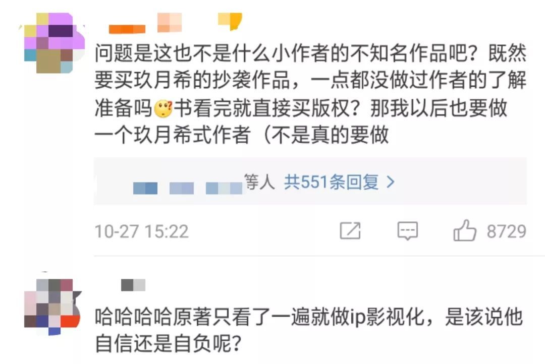 对于玖月晞的回应,网友们并不买账,纷纷表示“这是打着致敬的名号抄袭”“既然知道是误区,就不应该把版权卖给电影方”。