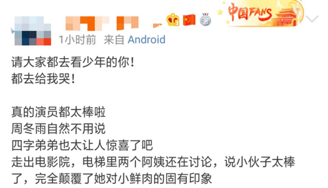 演员张译在看完《少年的你》之后也夸赞“这是我今年看到最棒的电影”。