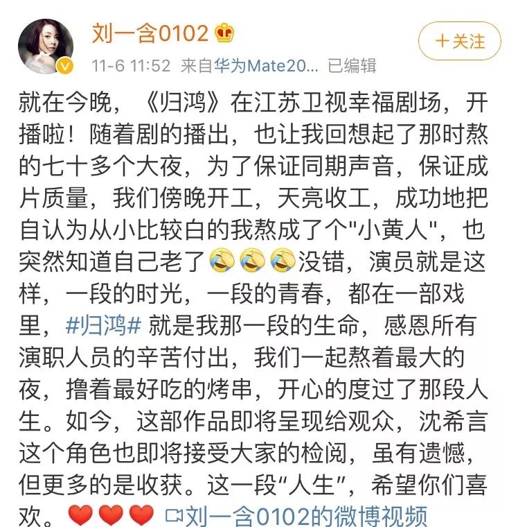 正式播出之前,这部剧的女主角刘一含,发布了一条很有趣的微博。