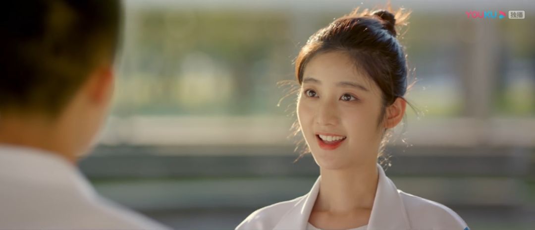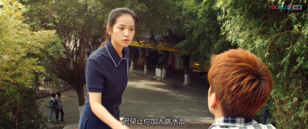 看剧照可能感受不深,她和江白龙的第一次见面,景框内青春感溢出屏幕——阳光校园,绿树蓝天,白衬衫和校服,还有扎起来的丸子头。