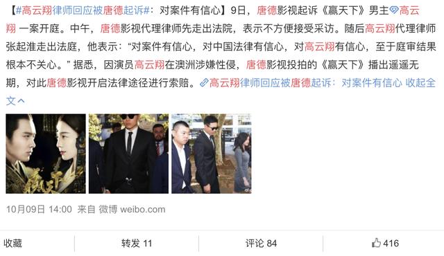 高云翔与内地制作人王晶在澳洲深陷官司至今,10月26日正式进入庭审环节。其实这次庭审已经两次延期了。根据律师分析,女当事人是否出庭,将决定案件走向。