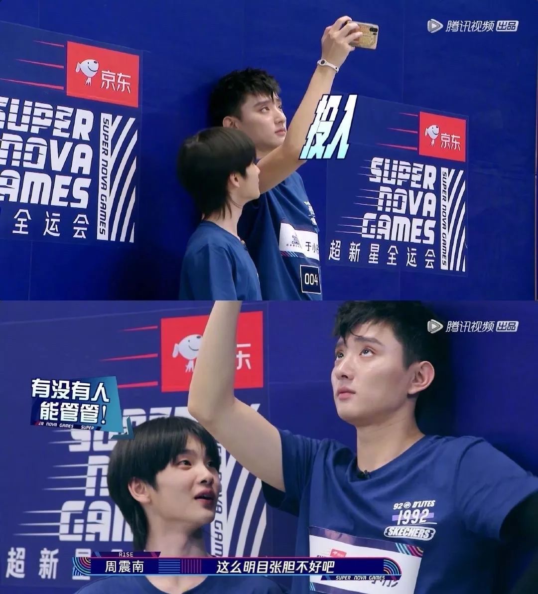 上期节目里周震南射完箭跑去找于小彤聊天,赶上陈小纭上场表演体操,于小彤没怎么理周震南一直在拿手机录,还拿周震南的头垫着胳膊