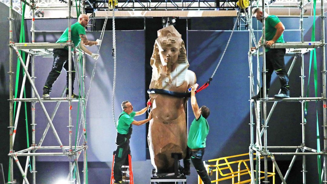 巴黎,装卸图塔卡蒙巨型雕塑,运往伦敦展览; YUI MOK/PA