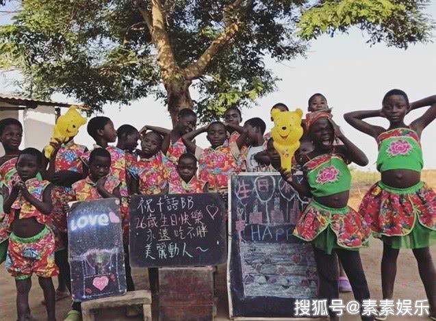 一群非洲的孩子们写上了粉笔字祝福吴千语生日快乐,其实这些孩子们就是吴千语近来年做慈善公益所帮助过的非洲孩子们。