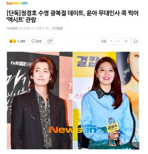 除了金宇彬申敏儿这对CP外,郑敬淏与少女时代秀英这对情侣也是甜到掉头。