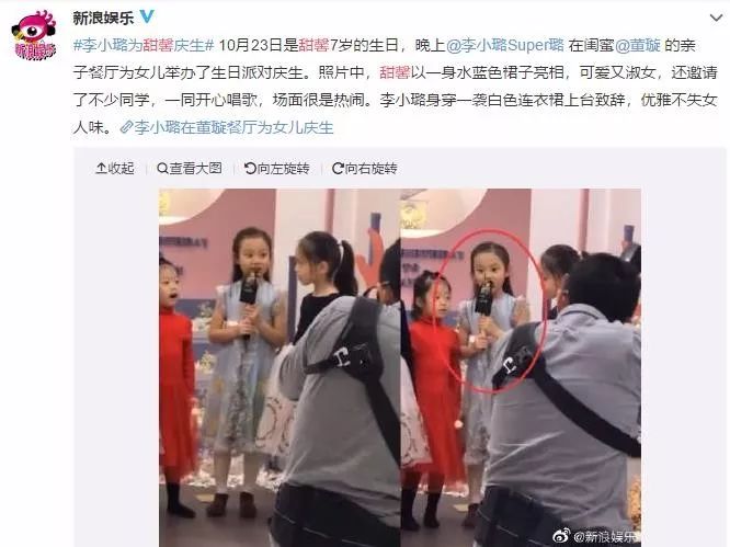 生日当晚李小璐更是在闺蜜董璇 的亲子餐厅为女儿举办了生日派对庆生。甜馨以一身水蓝色裙子亮相,可爱又淑女。从照片看甜馨还邀请了不少她的同学,一同开心唱歌,非常温馨快乐。