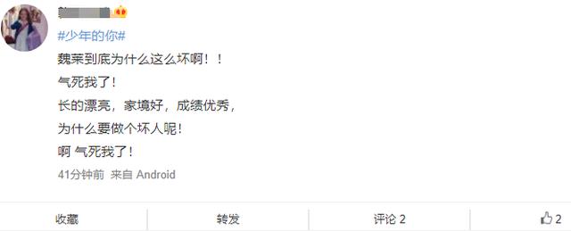 很多观众看完电影都疑惑了:长相好、家境好、学习好的魏莱到底为什么会那么坏呀?很显然,电影没讲明白。