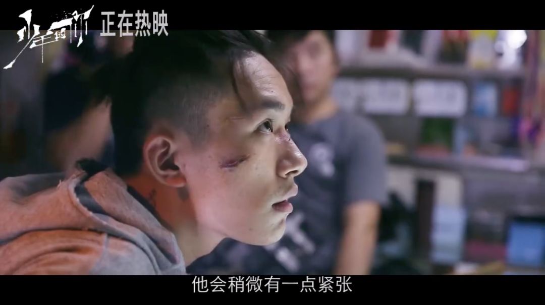 易烊千玺:我自己也不知道剃了之后什么样子,因为我稍微长大一点之后,就从来没剃过寸头,一直是长头发。我自己一直盼着看是什么样子,最后到真正拍那场戏的时候,拿起刀开始剃,才知道最后出来是这个样子,因为之前一直都戴着头套,就是拍海报之类的。