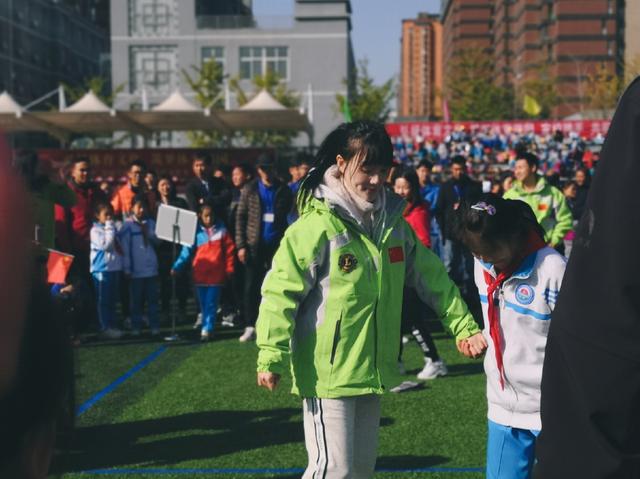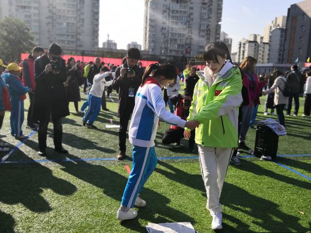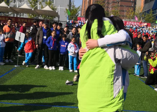 此时她正在和穿着校服的女生在做游戏,俩人牵着手,时而转圈时而拥抱,整个过程充满欢声笑语十分温馨。