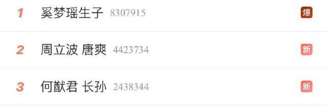 结果,热搜的第一条就是“奚梦瑶生子”,然后是“周立波唐爽”,以及“何猷君 长孙”