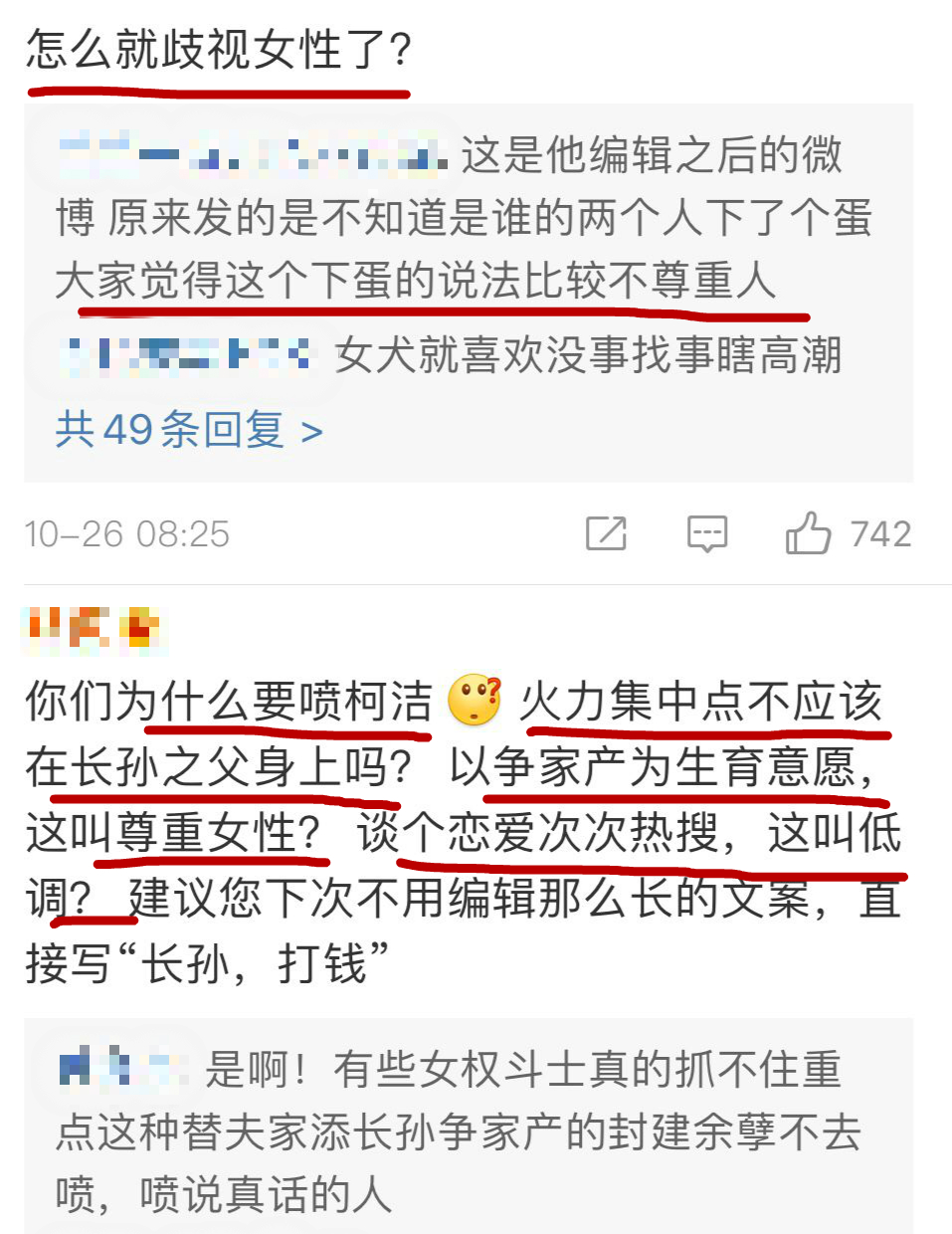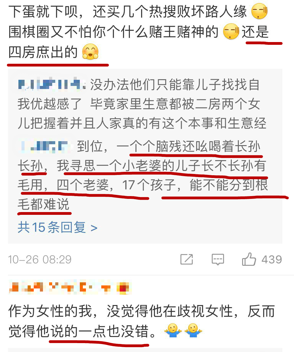 有网友表示,真正歧视女性的不是柯洁,而是何家豪门。