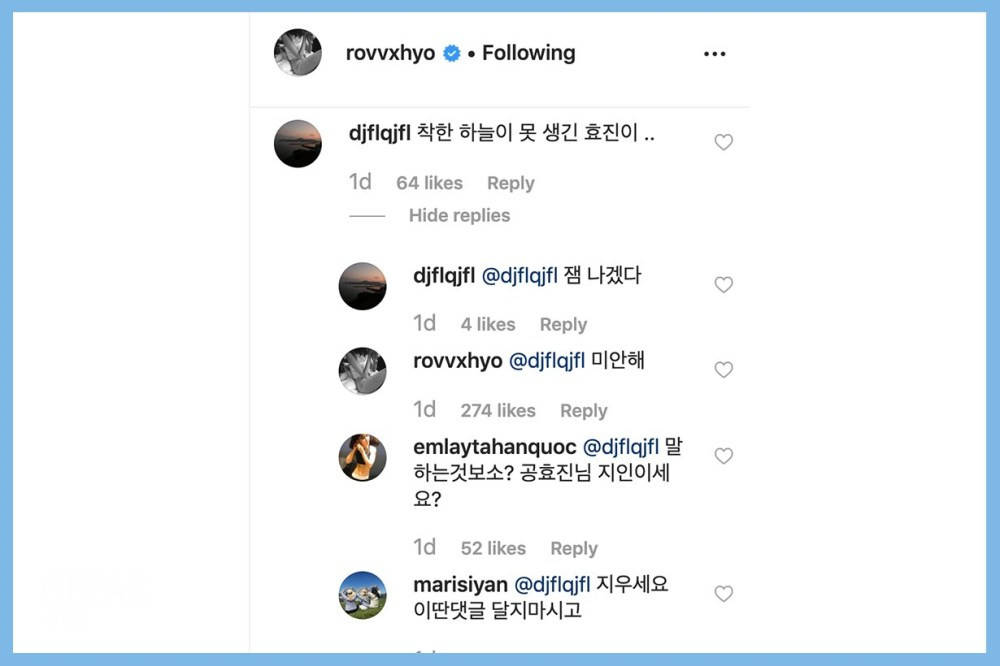韩国网络的「酸民文化」一向盛行,即使多红的偶像在台上获得多大的掌声,在他的社交网站上也肯定会有酸民留言,而且用词肯定会非常恶毒。虽然继早前雪莉离世的事件后,让韩国网民开始反思是否要抵制这些留下恶毒留言的网络使用者,但看来某部份人依然非常喜欢以谩骂获得快感;而最新的一名受害者竟然是孔孝真。