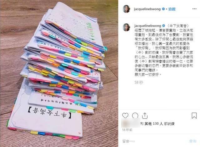 黄心颖在社交平台发文,发表了对剧集《牛下女高音》作为台庆剧的感受。她说:“《牛下女高音》经历了被抽起,传言要重拍,之后决定不重拍,到最后成了台庆剧,我实在有太多的感受。除了很开心,还有最后能将原装版本播出。我心里一直最大的感觉就是我很害怕,我很害怕因为我而影响到《牛下》这个剧的成绩,我很怕会浪费了大家的心血。只剩最后5集,我衷心的多谢促使《牛下》这部剧有机会播出的每一位,也要多谢收看的您们,更要多谢剧中的对手和同事们的体谅,愿大家一切安好。”