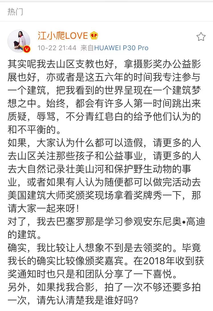 以至于,后来江一燕亲自回应获建筑奖的事情时,几乎所有网友都不买账:你这回应是什么?我们问你能不能做图用CAD,你说你支教去了?