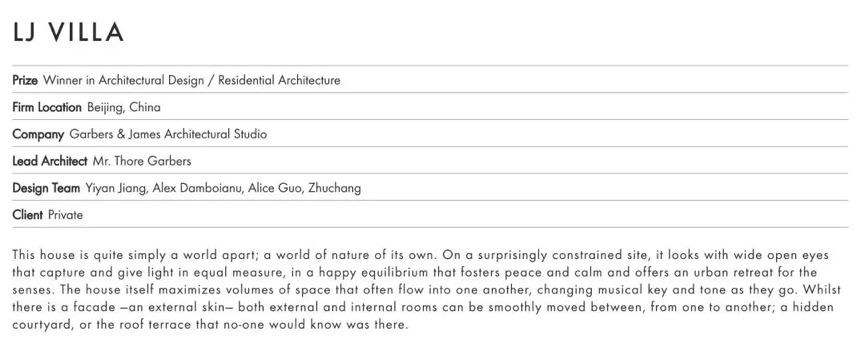有的小可爱可能有点懵逼哈,因为网上扒出来的获奖名单里确实有江一燕的那个“LJ Villa”项目。