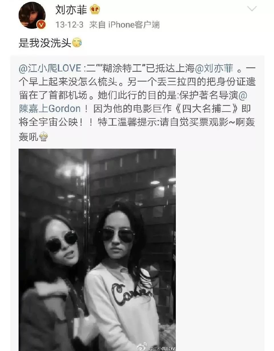 这两人大学期间关系着实不错,所以就算毕业以后,江一燕让刘亦菲去机场接她,刘亦菲也能不洗头不化妆戴个墨镜直接出门:
