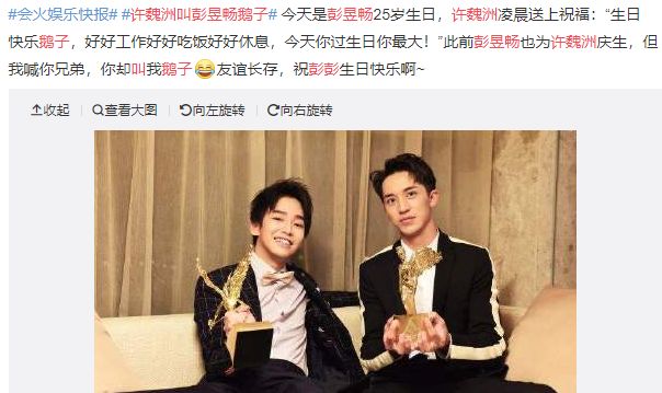 许魏洲叫彭彭“鹅子”给彭彭庆祝生日的话题,难得上了热搜~有不少人便疑惑:怎么这两人关系这么铁?毕竟许魏洲出道以来,很少合作过还能结交下来的好友,甚至还经常出现“跟合作男演员撕番位闹不和”的情况。