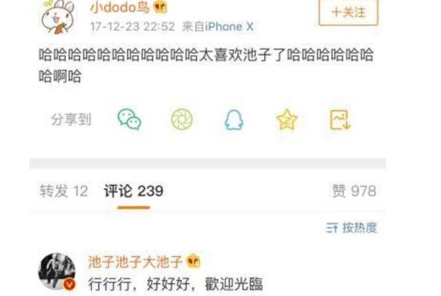 记得之前,豆得儿就在网上发文说太喜欢池子了,而池子本人还亲自回复了,还说欢迎光临,看来豆得儿还是池子的一枚小粉丝,如今追星成功,也真是恭喜她了。