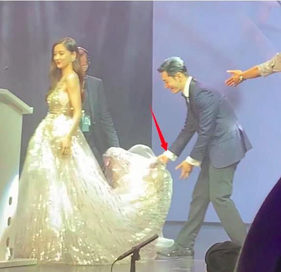 今年6月两人同台参加活动,黄晓明一路小跑跟在Angelababy身后帮她整理裙摆,Angelababy头也不回的走上台,结果台上两人全程零交流;