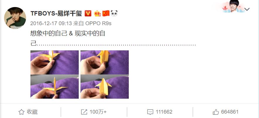比起全方位怼粉的队长和刚哥,“四字弟弟”易烊千玺就简单粗暴多了: