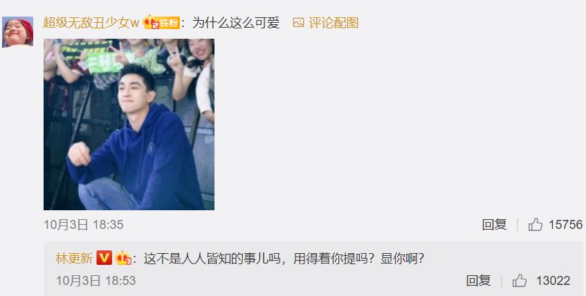 但作为看客,欢迎你到林更新微博找乐子,药到烦恼消,治愈效果杠杠滴!
