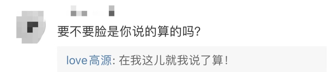 随后有网友在高源的微博下评论道:“要不要脸你说的算吗?”高源立马回怼:“在我这儿就我说了算。”可以说是非常刚了!