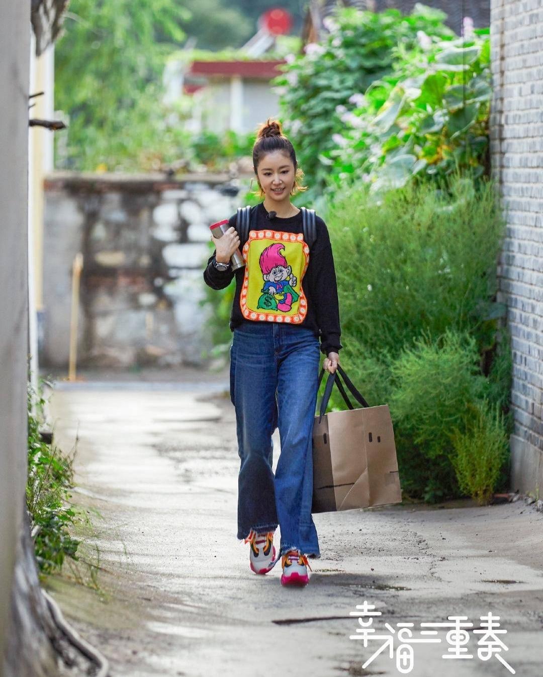 预告中,林心如身着黑色卫衣、阔腿牛仔裤、搭配运动鞋,扎着青春洋溢的半丸子头,笑容灿烂美好,感觉整个人都沉浸在幸福中,年轻了好多的感觉。