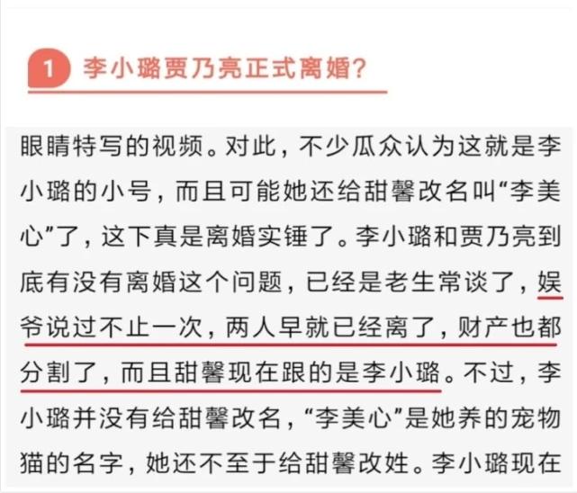 虽说并没有任何一条消息或者微博通稿中,明确地说过贾乃亮和李小璐已经离婚,但是各种没有证实过的绯闻爆料中都在说他俩各过各的了。即使两个人并没有离婚,但婚姻也是名存实亡的状态。