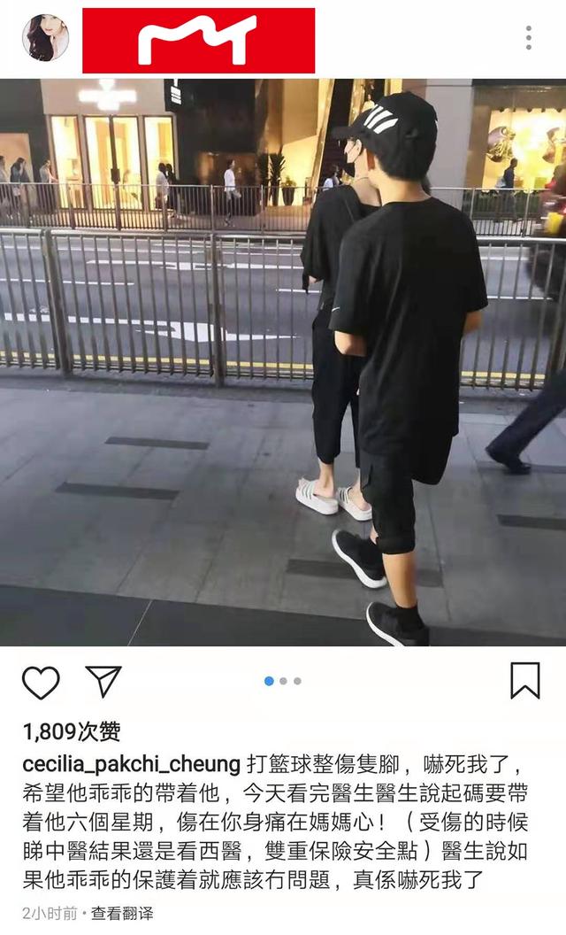 10月24日,张柏芝更新动态晒出了一组儿子受伤的图片。配文道,打篮球伤到双脚,吓死我了,希望他乖乖的带着他,今天看完医生,医生说起码要戴护膝六个星期。看医生采用了中西医结合的方式,为了保险起见。如果能够好好配合治疗,应该没有什么问题。张柏芝感叹:伤在你身,痛在妈妈心!