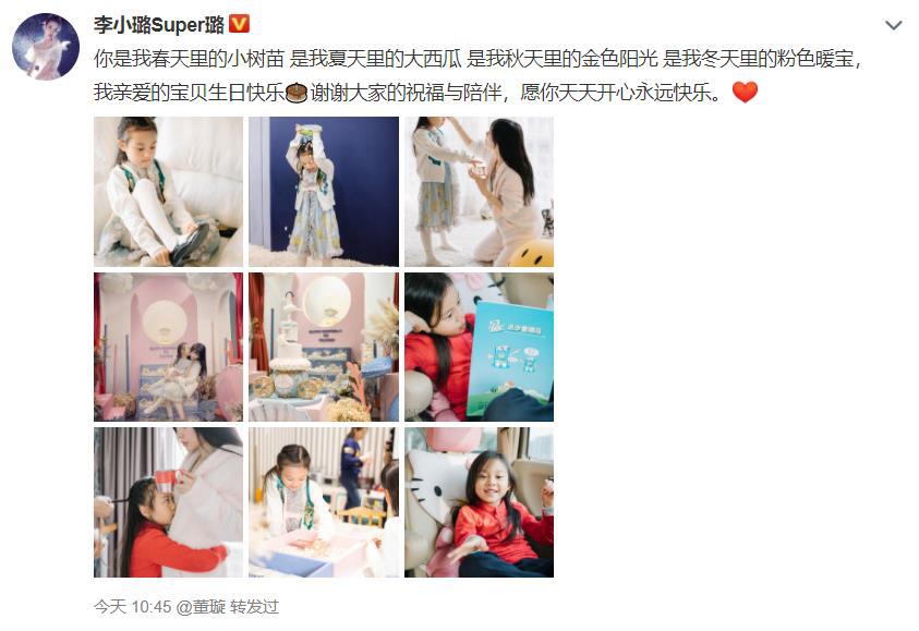 原标题:甜馨生日,贾乃亮李小璐发文为其庆生,另外董璇也发文为其