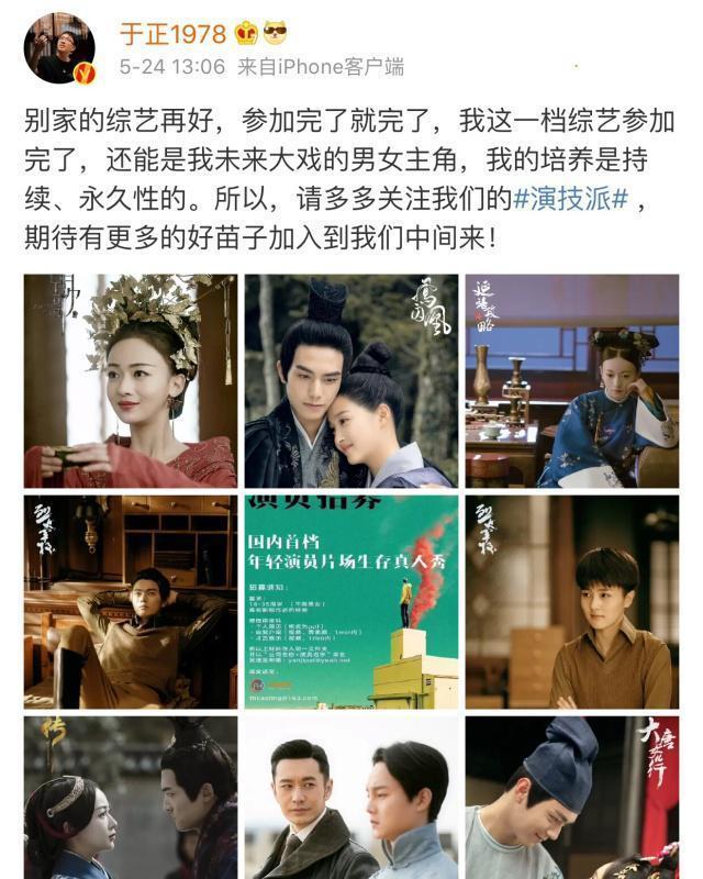 不过于正也打算自己弄一档综艺,在宣传的时候还说可能别的综艺演员参加完了,就真的是没有曝光度了,但是参加到他的综艺里面,或许还能够成为他下一部戏的主角,说这个是持久性的。