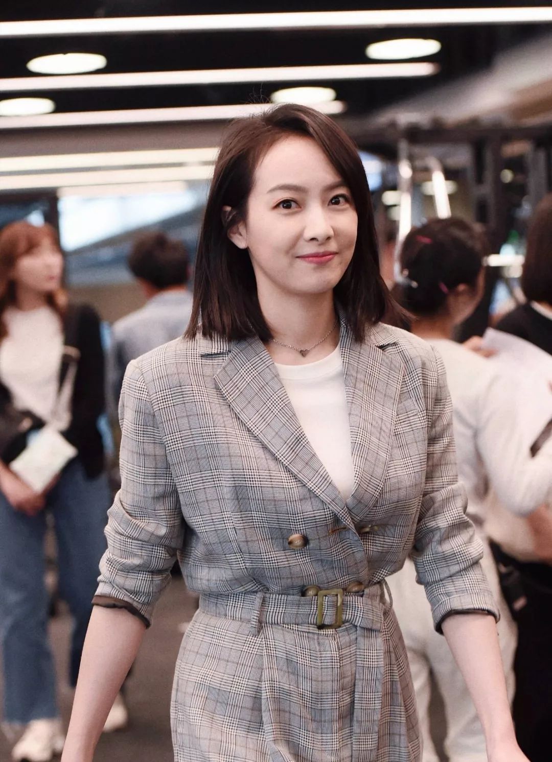 而重新回到工作当中的宋茜笑容满满,首现身就是以一身灰色格子连体西装现身,连体裤西装内搭一件白T恤,看起来十分干练帅气,妥妥的女强人既视感。