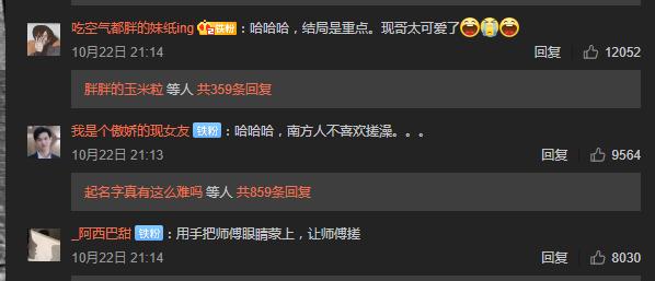 粉丝和网友们纷纷围观留言,跟帖同样风趣幽默,“用手把师傅眼睛蒙上,让师傅搓”,“哈哈哈,结局是重点。现哥太可爱了”,“哥哥好幽默的哥哥”,“放心认出来可以免费洗”。短短一晚上,点赞人数超过61万,9.4万人跟帖。大家发现,荧屏上的高冷帅哥,原来也有这么幽默可爱的一面。
