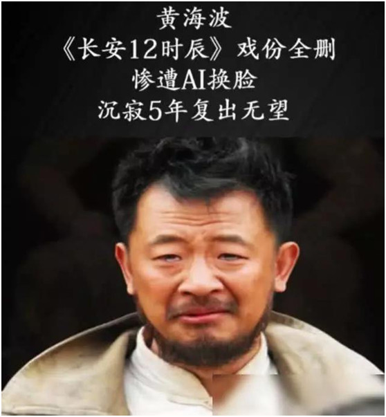 今年大爆的口碑剧《长安十二时辰》,黄海波就有出演。但后来剧组考虑到他的影响,怕观众和网民不接受他,在上映之前,用AI技术换掉了他的脸。