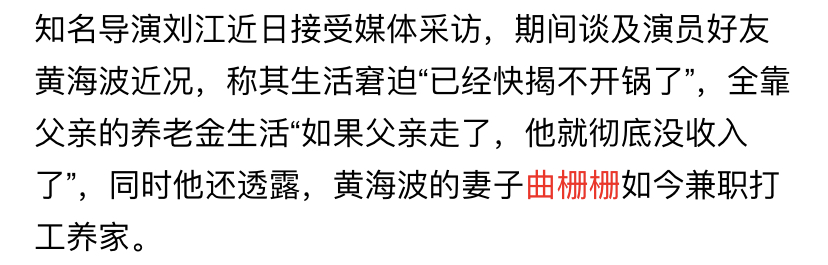 前几天有爆料声称,黄海波已经穷的揭不开锅,只能靠着父亲的养老金度日。