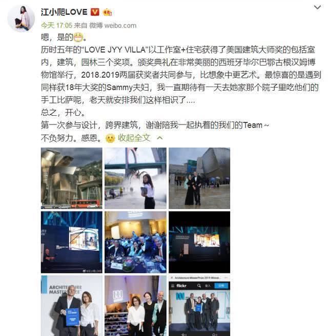 没想到22日江一燕本人在社交账号上发文宣布了自己的建筑得奖的消息,声称自己第一次参与设计,跨界建筑,大有一副获奖感言的模样但是不出意外的遭到了网友的嘲讽,认为这是乱立才女人设。