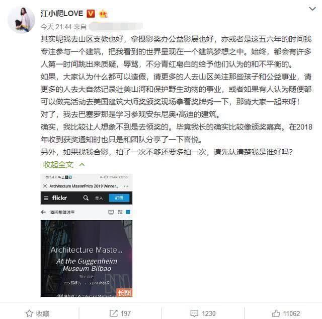 原标题:拿奖被指造假,江一燕回怼:总有人跳出来不分青红皂白的
