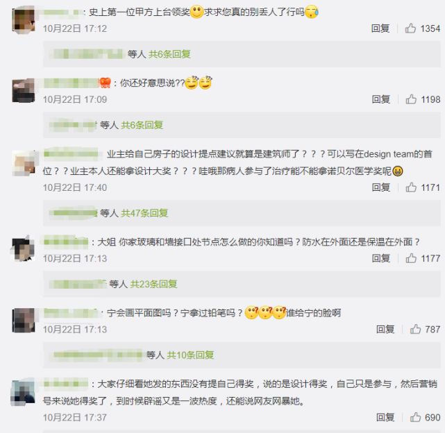 有网友对于此有些强词夺理的说辞提出了反驳,“你去不去山区跟搞建筑有什么关系?山区你不去政府也精准扶贫呢,别老往自己脸上贴金就不能回应下建筑同学们的问题吗?你懂设计吗?”喊话她拿出自己的图纸跟方案证明自己,这才是得奖的最有力证据。