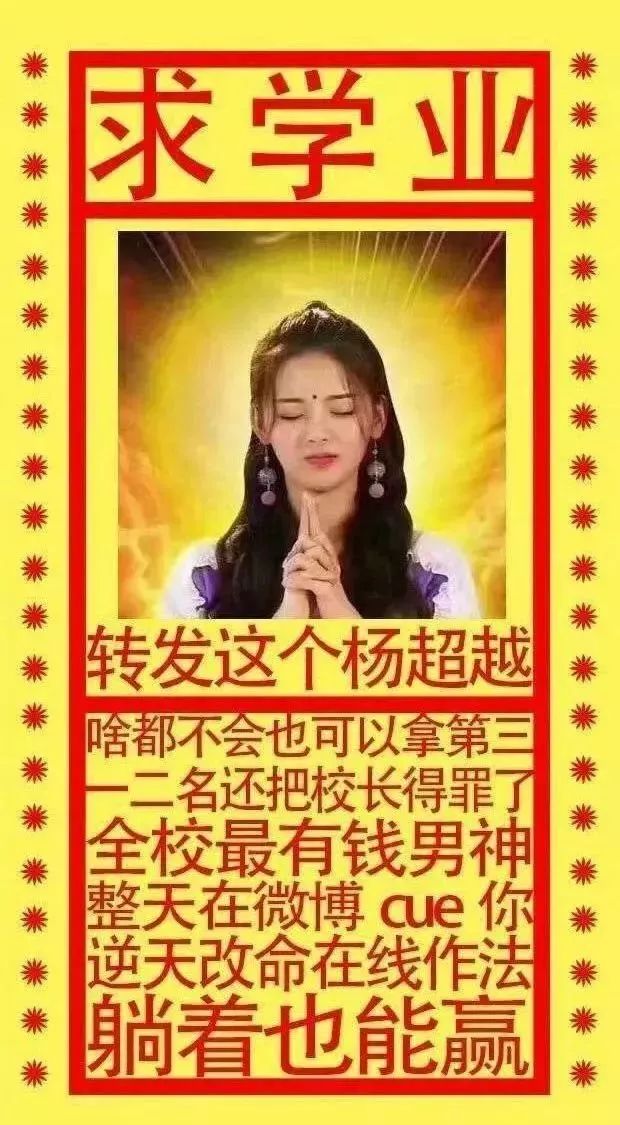 杨超越曾在节目中许的愿说想上快乐大本营,后来就上了,网友用财神屏后下午股票就涨了,再加上逆袭的人设,网友曾一度疯狂转发,传言只要转发就有好运!