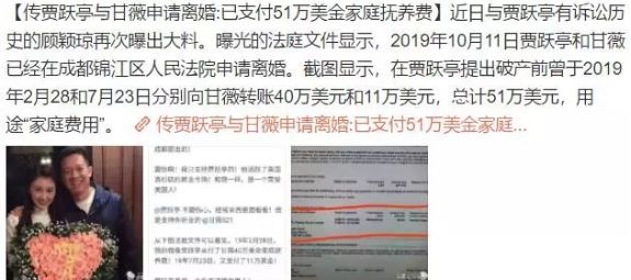 重点不是这个,而是贾跃亭最近被爆出了离婚,还支付了51万美金的家庭抚养费