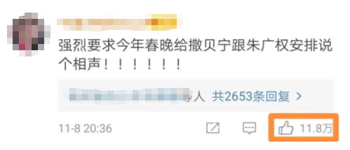 有关春晚的话题 ,也在网上讨论起来……微博上,下面这条网友评论已获超11万点赞。