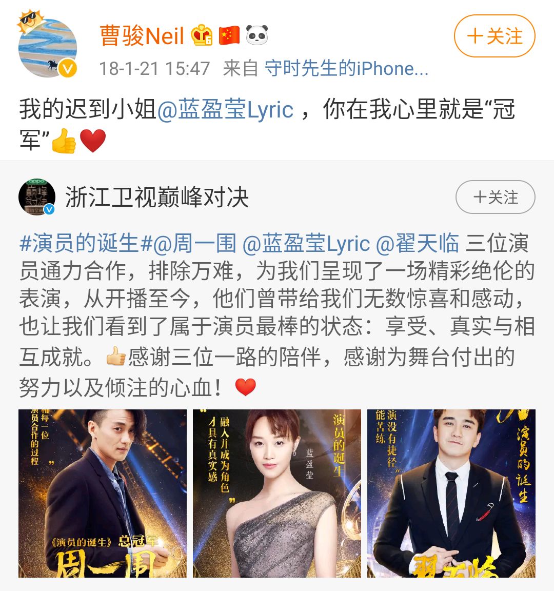 在一些网友看来,隐性原因可能和女强男弱越来越明显有关:蓝盈莹今年事业起色不错,大部分微博都是宣传分享新作品。