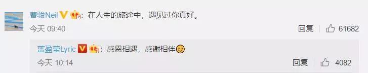 两人在各自的微博下面也是互相的评论了对方:在人生的旅途中,遇见过你真好。