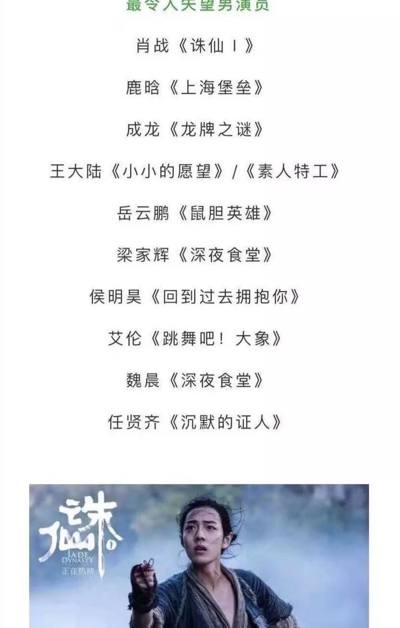 最让人期待的圈内演技大奖“金扫帚”的最终投票结果来了,《诛仙》和《上海堡垒》果然不负众望拿下了最失望男演员和女演员的桂冠。