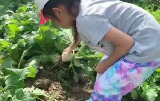原标题:李小璐带甜馨到采摘园做劳动,小甜馨费九牛二虎之力拔出