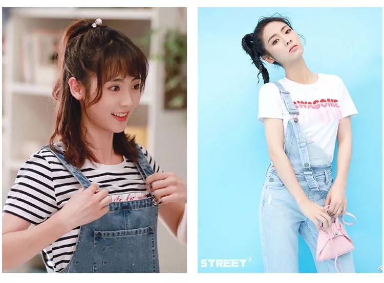 因为长相比较幼态,所以邢菲饰演的还是各类青春偶像剧的角色。虽然在剧中的打扮还挺土的,通常都是背带裤条纹衫之类,但好在有颜值撑着,至少没有任何违和感。