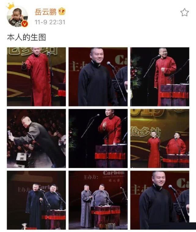 似乎是有些不服气,11月9日深夜岳云鹏再次晒出了九宫格自拍,声称是自己的生图,都是一些演出的现场照,只不过岳云鹏的每一张照片都经过了修图,把自己脸P的小了好几圈,甚至还有尖下巴,看起来确实像小鲜肉了,但这眼睛却一直没有修。