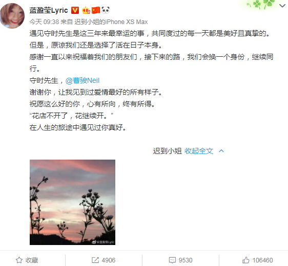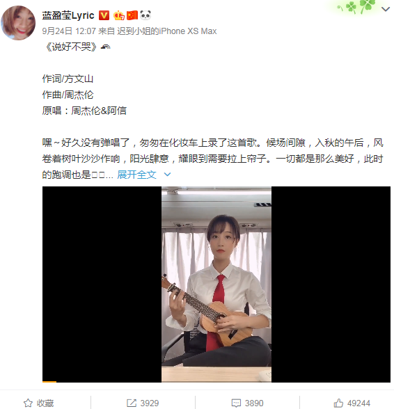 而蓝盈莹则在上个月同样有所暗示,唱了一首《说好不哭》。两人在时间点上,几乎是一前一后。蓝盈莹本人还称好久没有弹唱了,这也说明已经好久没有和曹骏在一起了。所以两人应该是在上个月就已经决定要分手了,只是没有公开而已。