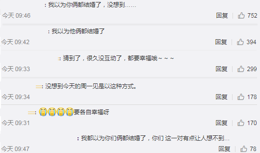 总之对于两人的分手,一些网友多少感到有些“猝不及防”,认为毫无征兆,因为原本是最为看好的一对情侣。但正如一些网友所说,一别两宽,从此各自安好。